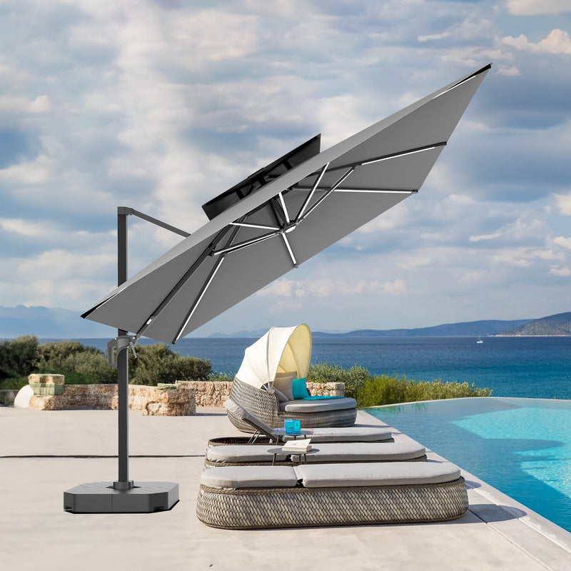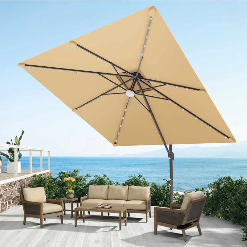 Patioslife Aegis Premium Cantilever Umbrella with LED Strip Lights, Fibreglass Ribs & Powder-Coated Aluminium Pole, Cover— Luxury Garden & Patio Shade