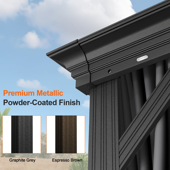 • Sturdy Powder-Coated Aluminium Frame – Lightweight yet exceptionally strong, with elegant wood grain finish to complement any outdoor décor. Please note: the frame color is the same for all models; only the curtain color differs (Grey or Brown).