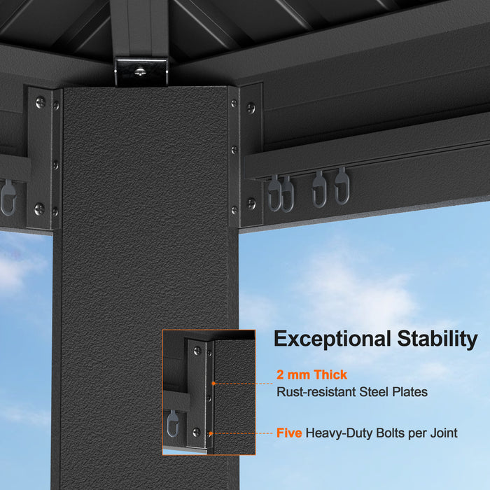This waterproof system keeps the gazebo dry and durable year-round.