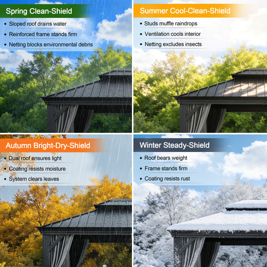 From warm spring mornings to snowy winter evenings, this gazebo is built to stand strong through every season.