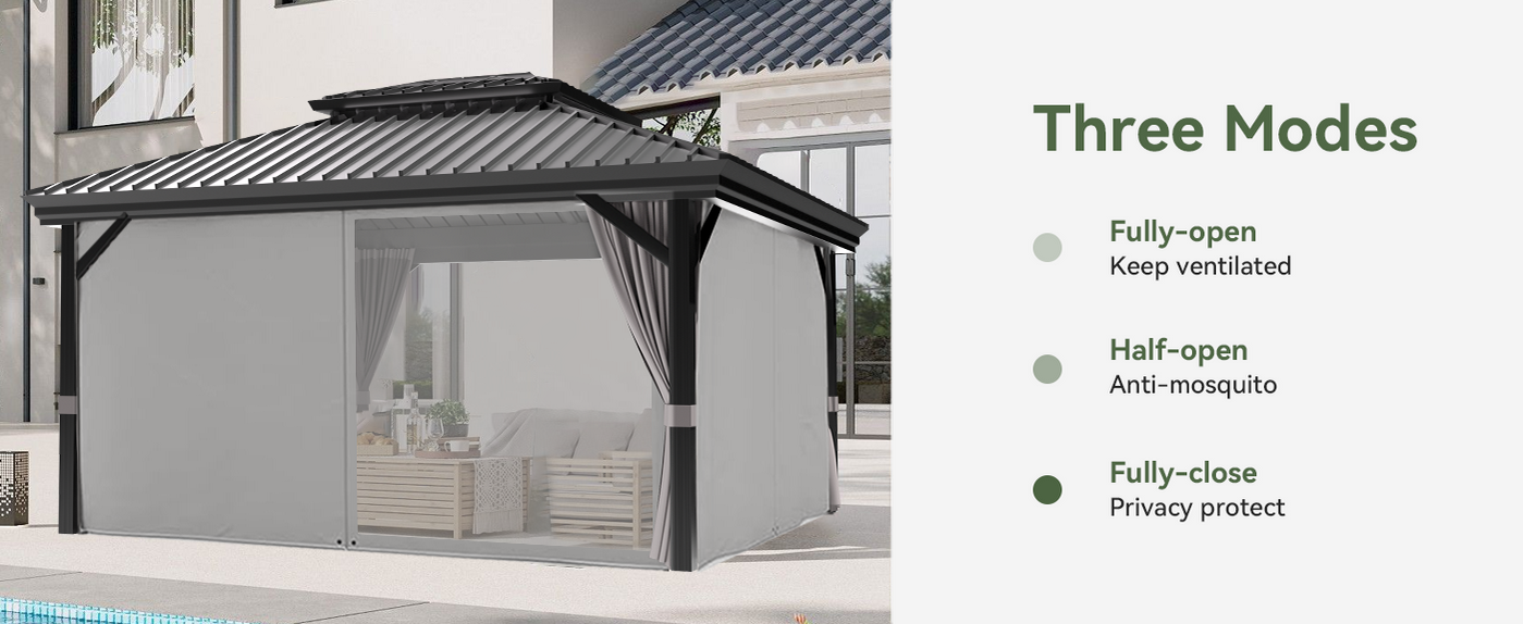 We provide a limited warranty: 5 years on the hardtop roof, 2 years on curtains & netting, and 1 year on the frame against manufacturing defects. Replacement parts and after-sales support are available—just contact our customer care team.