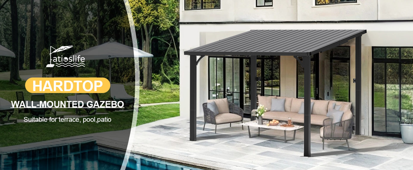 Transform your patio or backyard wall into an elegant year-round retreat with the Patioslife™ Wall-Mount Hardtop Gazebo — designed for enhanced stability, efficient space use, and superior protection from the elements.