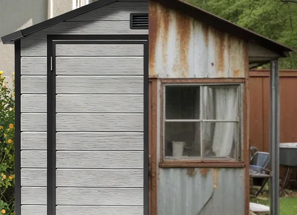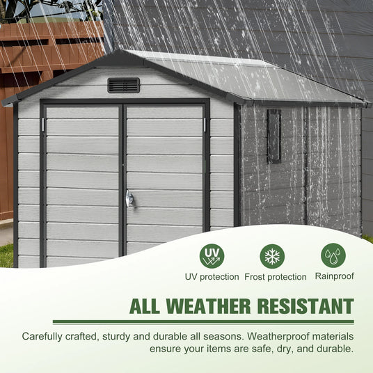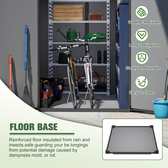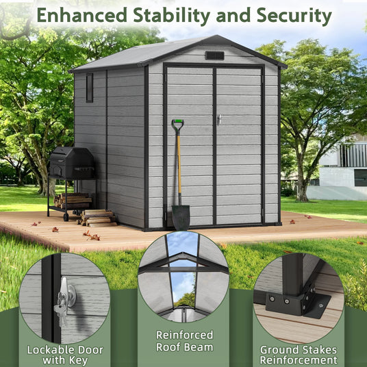 Meet the Patioslife YardVault Resin Outdoor Storage Shed with Floor—a tough, low-maintenance storage solution built for year-round backyard use. Its 20 mm double-layer resin construction and extra-strong 4-layer HD panels deliver reliable strength and stability, while UV-resistant, waterproof, rustproof polypropylene helps protect your tools, bikes, and lawn equipment through changing seasons. The included heavy-duty floor means it’s ready to use right after assembly, and built-in ventilation plus translucent windows keep the interior brighter and better aired, helping reduce dampness. Finished with reinforced double doors and a lock-ready hasp, YardVault keeps your gear secure—without the hassle of painting or sealing.